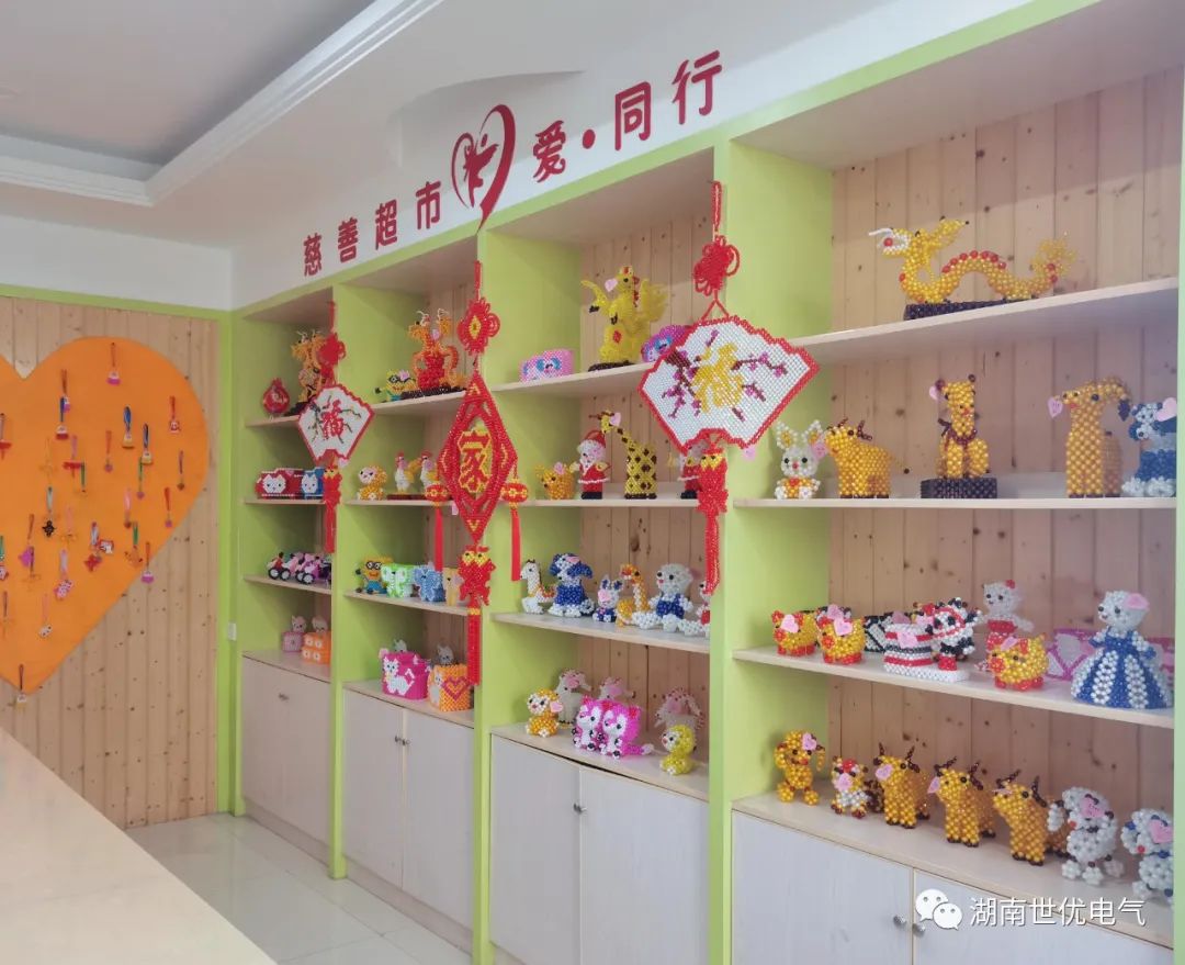 在慰問活動中,福利院劉勇院長首先帶領(lǐng)志愿者成員參觀福利院的活動室、教室、康復(fù)室等場所和設(shè)施,并詳細介紹了福利院的相關(guān)情況。福利院的兒童大多都是殘障兒童,很多孩子都不能正常學(xué)習(xí)生活,全靠福利院老師、治療師盡心盡力、無微不至地照顧。看到孩子們開朗、熱情地和志愿者們打招呼,并且積極地向我們展示他們親手制作的手工藝品,志愿者們心中感到非常欣慰,并對福利院老師們?yōu)樘厥鈨和B(yǎng)育、教導(dǎo)、康復(fù)等工作的無私付出表達崇高的敬意。世優(yōu)電氣的黨員干部和志愿者們將慰問物資贈與福利院,并表示有機會還會發(fā)動更多的社會力量關(guān)愛這些兒童,讓他們能夠感受到社會大家庭的更多關(guān)愛。